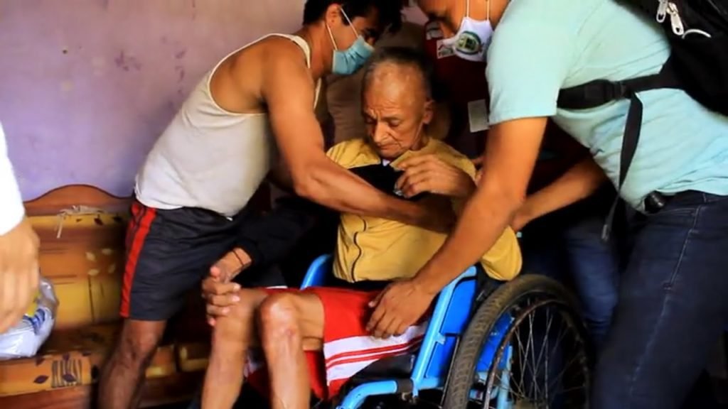 Banda de Shilcayo: Apoyan a anciano de Bello Horizonte con silla de ruedas y alimentos