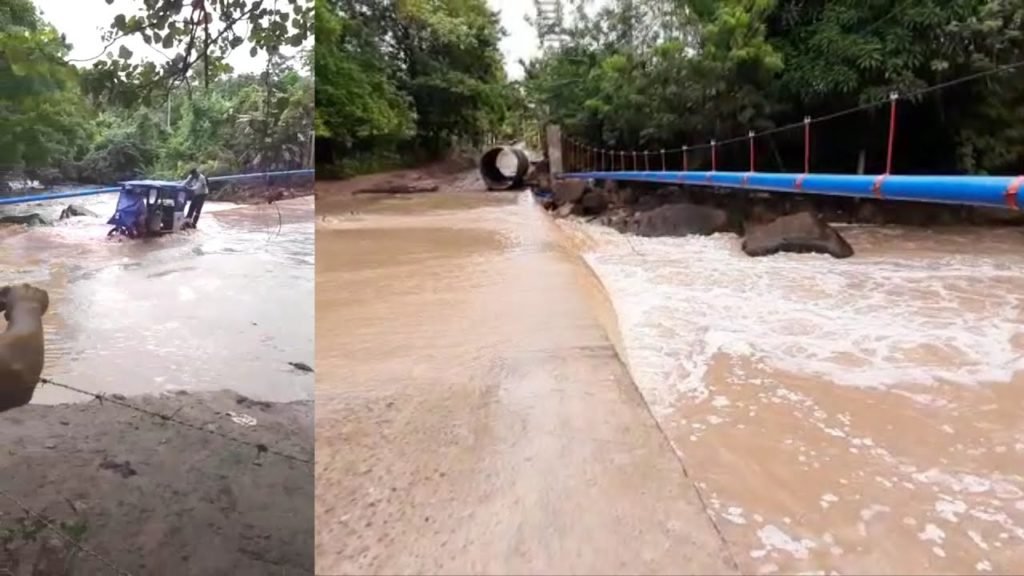 La misma se desbordó y afectó el normal tránsito en la carretera al caserío Bello Horizonte. Vecinos del sector tuvieron que ingresar hasta la mitad del badén para comprobar si podían pasar.