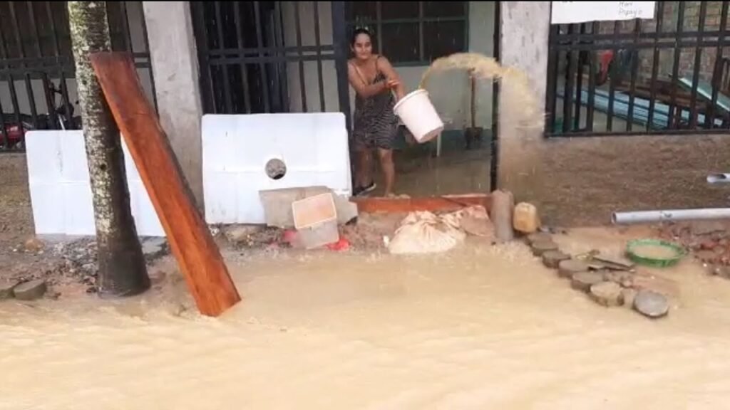 Otra pobladora, dijo que desde la madrugada su vivienda se vio perjudicada, el agua ingresó a su casa, tuvo que colocar arena en saco y manera para evitar que ingreso las aguas de lluvia.