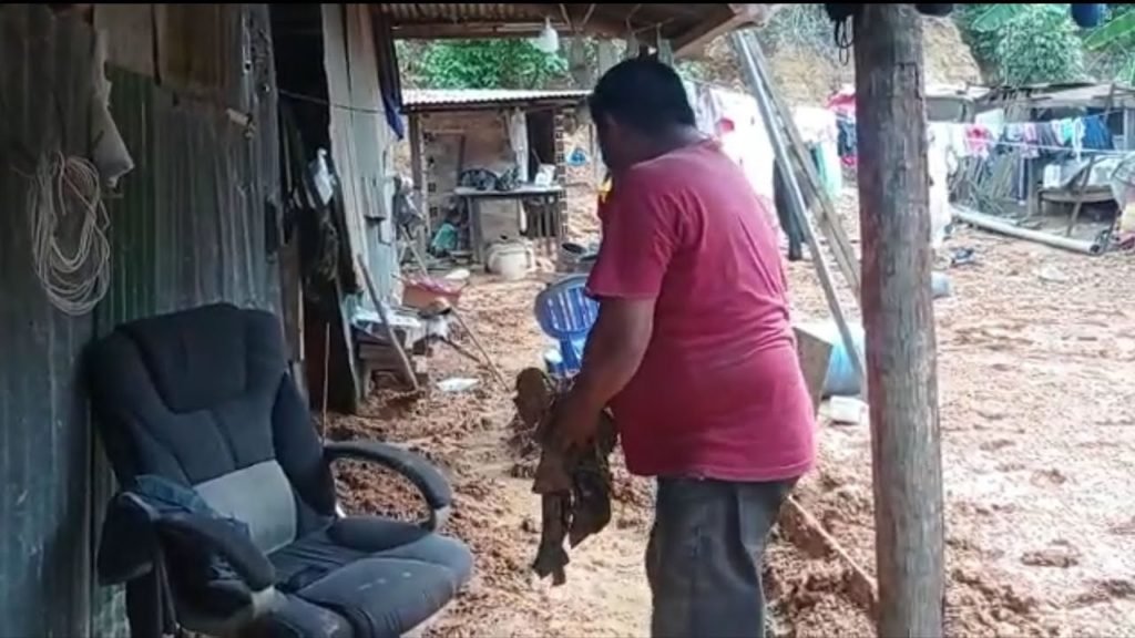 Reyler Pulser Ávila, vecino afectado, dijo que su casa terminó cubierta de barro, atribuyó el hecho al mal trabajo de lotización en un terreno ubicado en la parte alta.