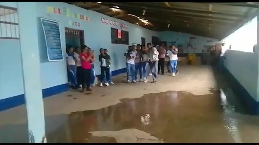 Al inicio, los estudiantes y maestros observaban como el agua ingresaba. El pabellón principal fue cubierto parcialmente por las aguas pluviales que discurrieron desde el patio, los estudiantes la ver lo que sucedía, cogieron escobas y trataron que las aguas no inunden las aulas.