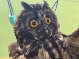 Tarapoto: Rescatan búho que tenía el ala herida con perdigón, animalito buscó refugio en patio de jardín de niños