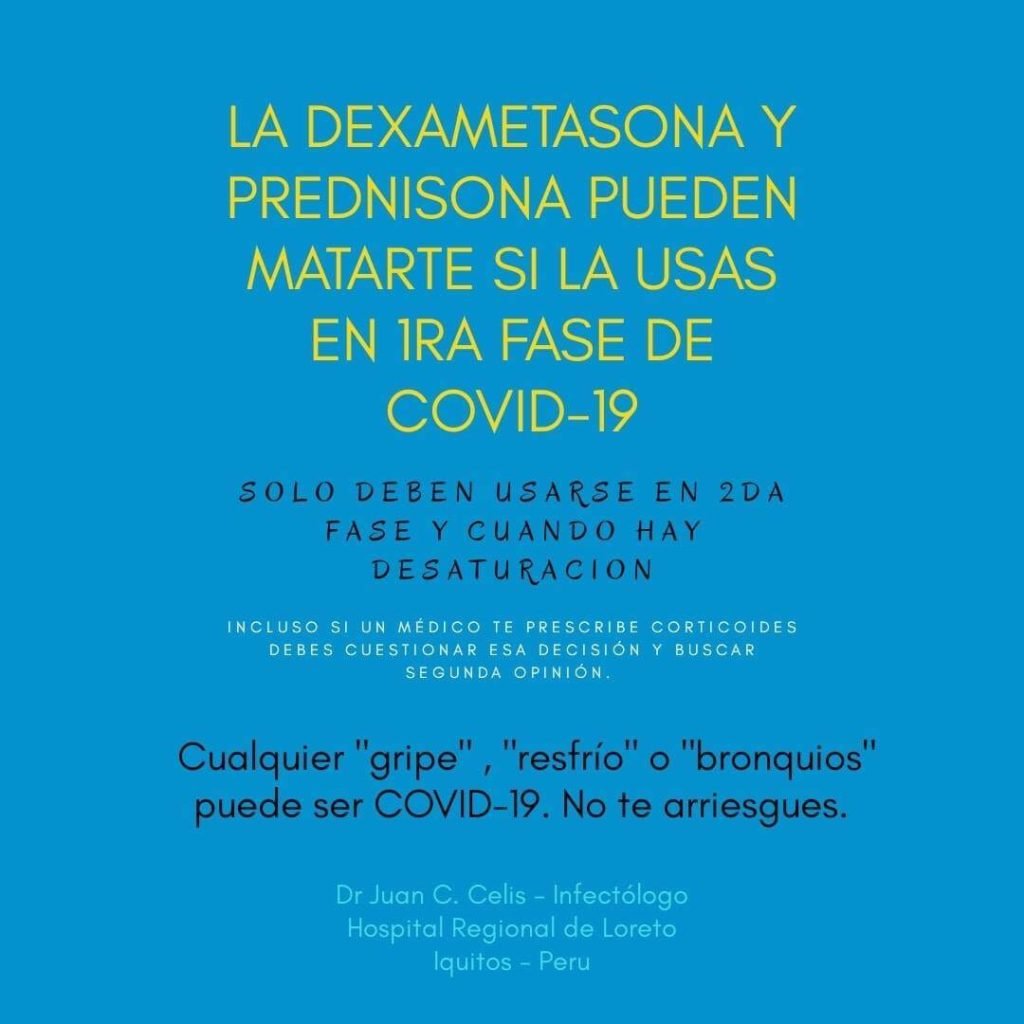 Si alguien te da, te recomienda o incluso médico te prescribe Dexametasona/ Prednisona/ o similares, literalmente te puede estar haciendo daño y puede matarte.