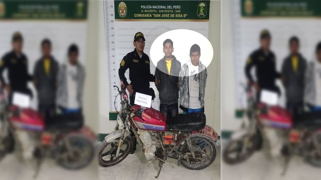 Ambos, fueron intervenidos en la cuadra 01 del Jr. Grau en el distrito de San José de Sisa, a las 09:55 de la noche de la noche aproximadamente cuando se desplazaban en una moto lineal que, al parecer, habría sido utilizad en el hecho delictivo.