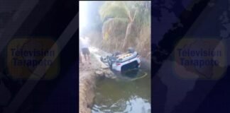 Morales: Auto se despista y cae a canal de riego Cumbaza