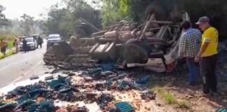 San Martín: Camión repleto de huevos se despista en carretera a...