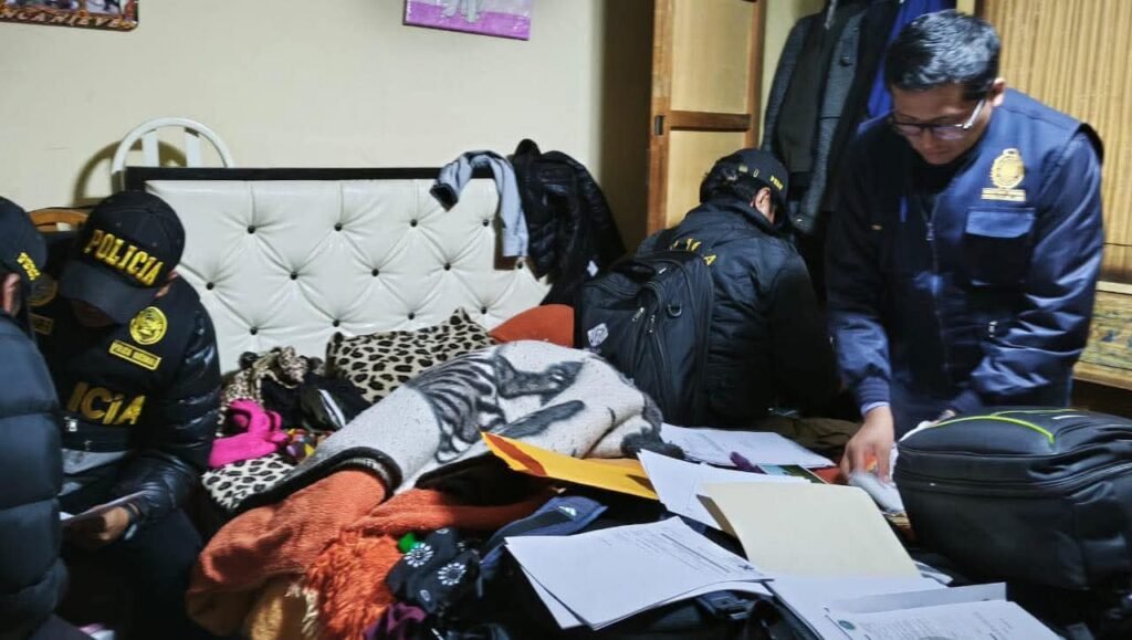 En la diligencia, que comprende el allanamiento con descerraje de las cuatro viviendas de los investigados ubicadas en la ciudad de Puno, también se viene incautando distintos documentos, celulares y dispositivos electrónicos que servirán al desarrollo de las investigaciones.