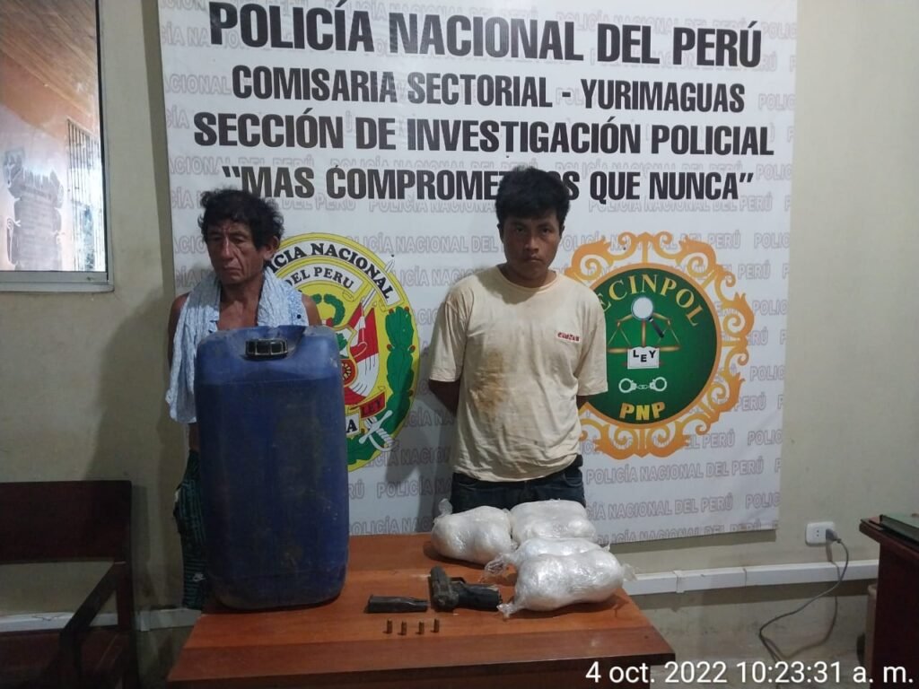 Personal del Departamento de Operaciones Tácticas Antidrogas de Tarapoto, intervino a Euler Sopla Shupingahua (34) y José Agustín Villegas Bustamante (51) quienes trasladadan 22 Kg de Pasta Básica de Cocaína por la carretera de penetración Simuy – Yurimaguas. La droga se encontraba acondicionada en un timbo y bolsas de plástico. Los mencionados, estarían inmersos en el delito contra la seguridad pública – tenencia ilegal de arma de fuego (pistola marca Baical). Los detenidos, fueron trasladados junto a las especies comisadas y/o incautadas a la Depotad -Tarapoto para continuar con las diligencias de acuerdo a ley.
