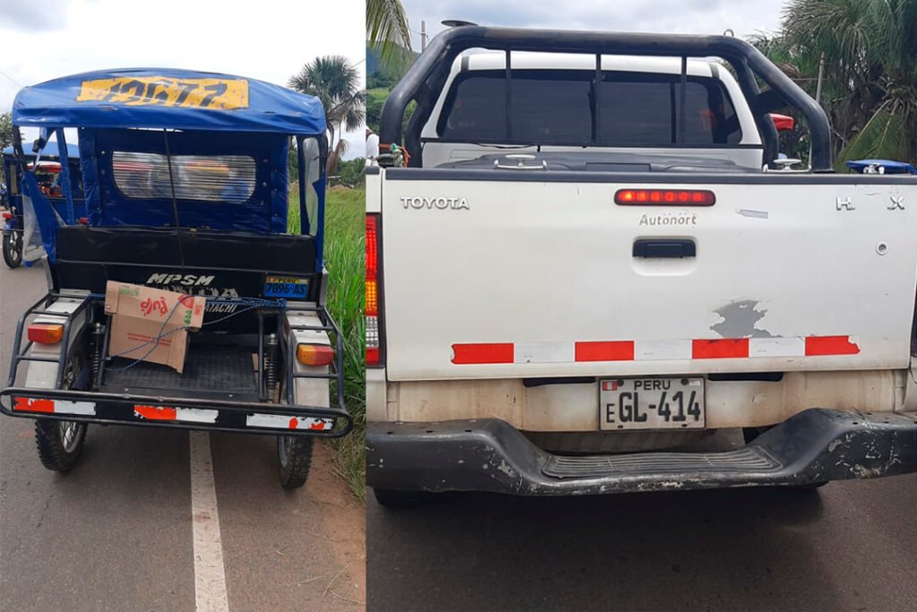 Unidad menor era conducida por Anthony Sanchez Rengifo, quien también terminó con golpes en el cuerpo. Mientras vehículo mayor era manejado por Fernando Sisniegas Huertas. El hecho sucedió cuando trimóvil ingresaba a la carretera Fernando Belaunde Terry.