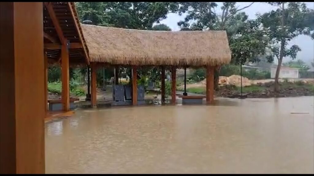 Tras la torrencial lluvia que duró más de 13 horas en esta parte de la Amazonía peruana, la obra del parque temático construido en la turística localidad de Sauce, terminó inundada por las aguas de la quebrada Upianillo. La misma, aún no fue inaugurada y ya atraviesa serios problemas que podrían dañar su infraestructura.