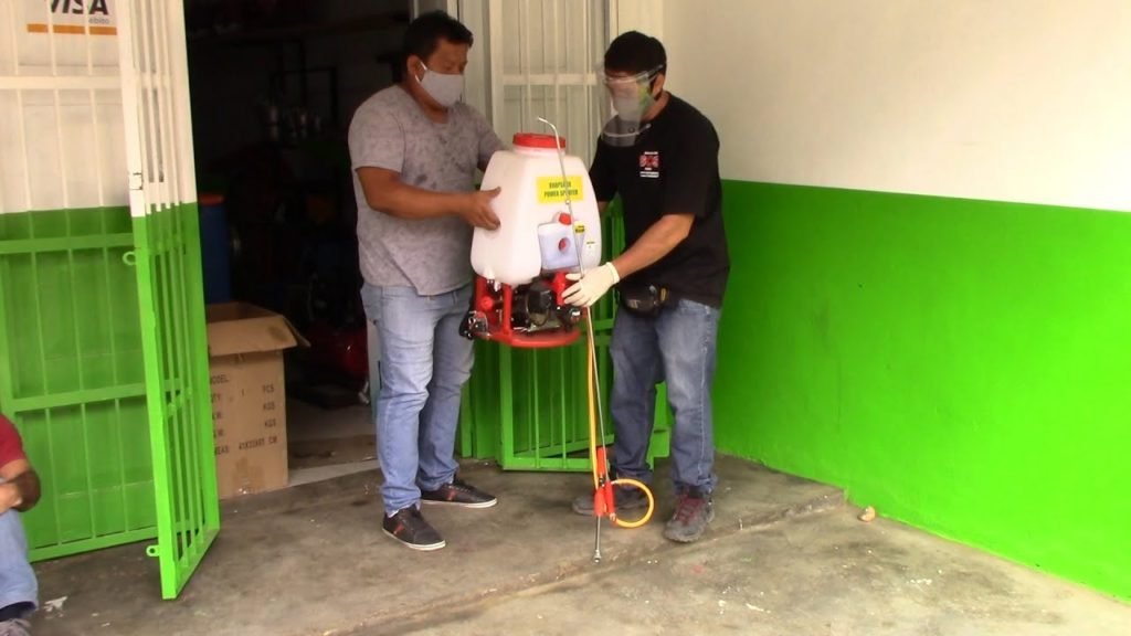 San Martín: Donan mochila fumigadora con motor a joven que desinfecta los hospitales de forma gratuita