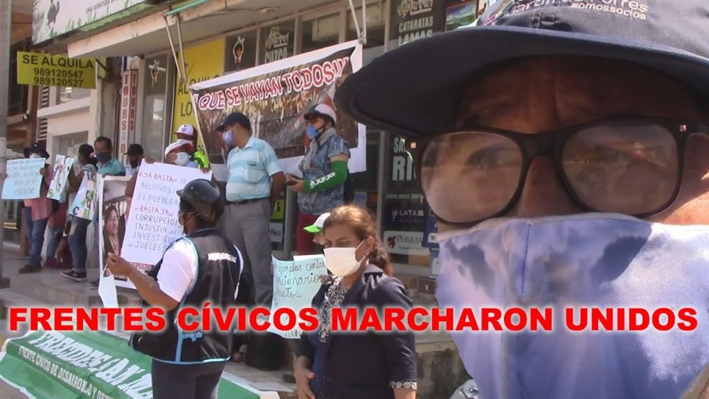Con la finalidad de protestar contra los hechos de corrupción que se viene suscitando en el sector público del país y de la región, esta mañana el Frente Cívico de Defensa de San Martín, realizó una movilización y protesta en el frontis de la Plaza Mayor de Tarapoto.