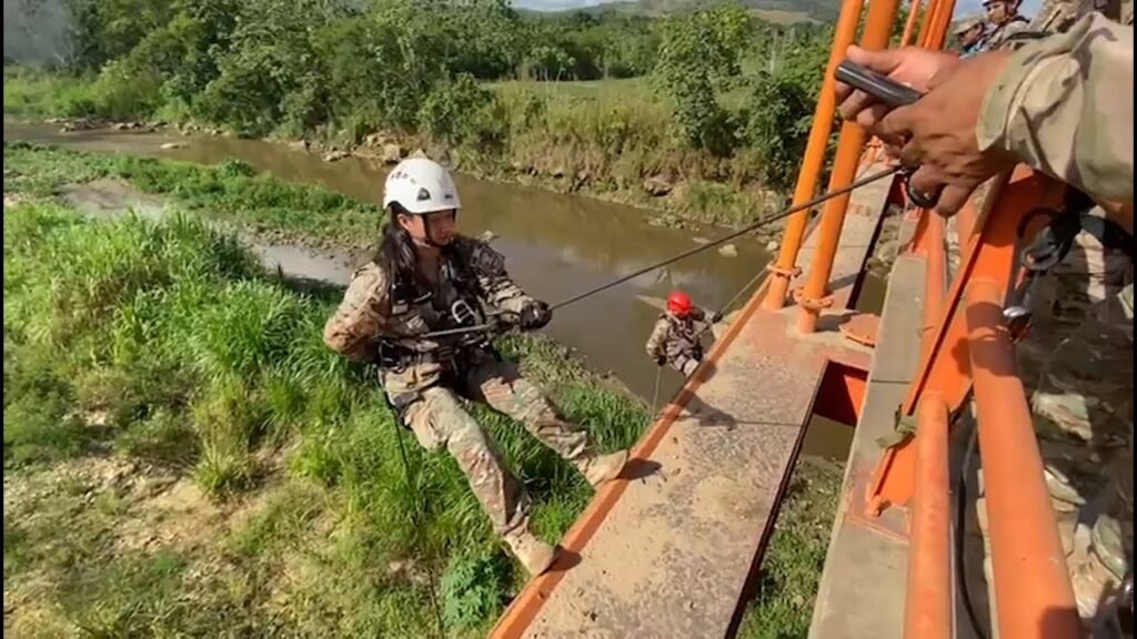 Personal de la Fuerza Aérea del Perú (FAP Tarapoto) participó, este martes, en un curso de búsqueda y rescate que tuvo como lugar el puente Tarapoto, donde se ejecutó las simulaciones.
