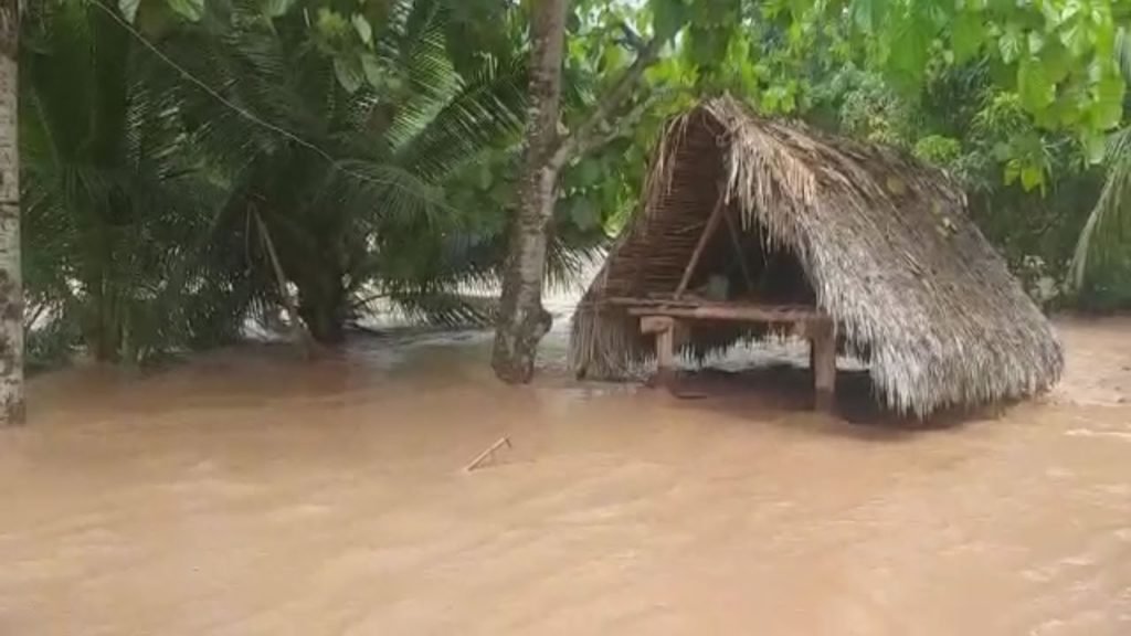 Las viviendas rústicas y gallineros de algunas familias también terminaron cubiertos con el agua.