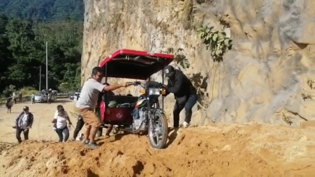 No fue difícil para los pasajeros de algunas unidades hacer transbordo junto a toda su familia. Asimismo, conductores de trimóviles y motos lineales cruzaron el derrumbe con la ayuda de terceras personas.