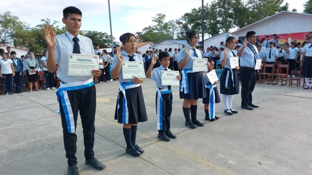 La I.E N° 0106 – Alfonso Ugarte Vernal de Tarapoto, realizó el último fin de semana, la juramentación de las autoridades del municipio escolar, también de brigadistas, delegados de aulas y delegados ambientales.