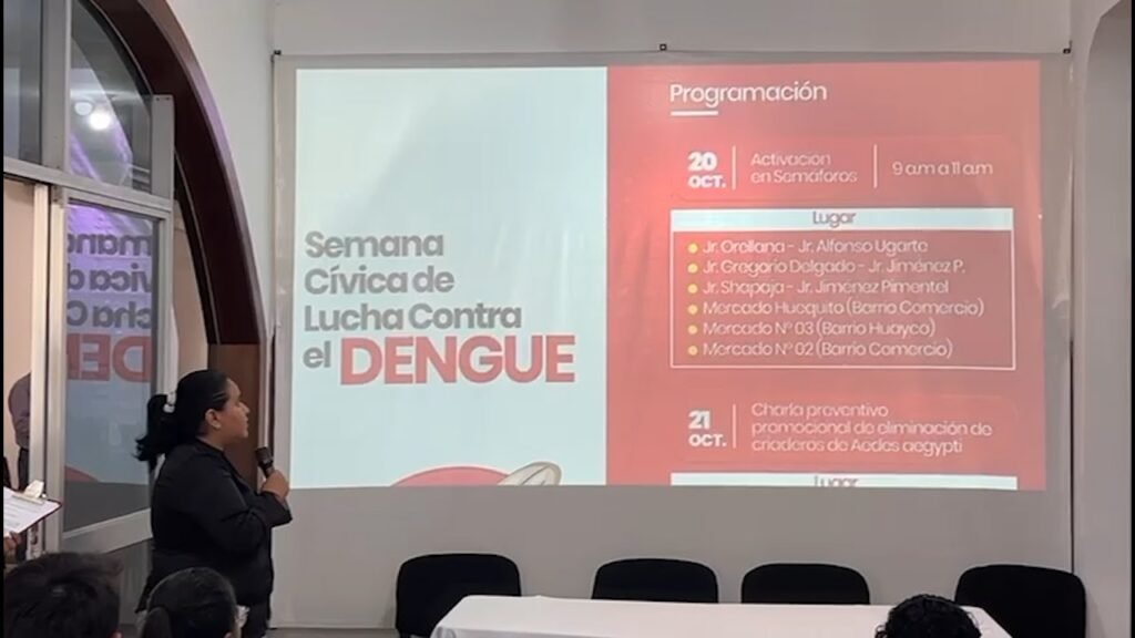 Gladys Sofía Rodríguez Aspajo, directora de la red de salud San Martín, anunció el inicio de diversas actividades preventivas en el marco de la Semana Cívica de Lucha contra el Dengue, con el objetivo de reforzar las acciones de limpieza y control del zancudo Aedes aegypti, transmisor de esta enfermedad.