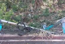 Un gran susto vivió los vecinos del sector Puerto Azul, ubicado en el margen derecho del río Shilcayo, en la ciudad de Tarapoto, luego de que un enorme árbol se desplomara cerca de las escalinatas, afectando seriamente el sistema eléctrico de la zona. El incidente ocurrió tras los fuertes vientos registrados durante la tarde, dejando como consecuencia un poste de cemento partido en dos y cortes de energía en varias viviendas.