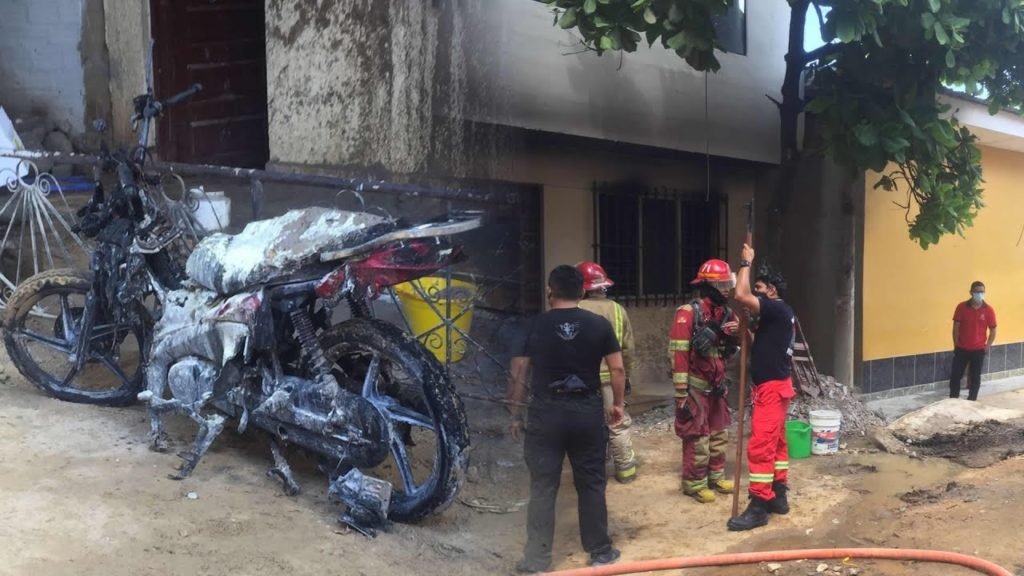 Aparentemente, un corto circuito en una motocicleta provocó un incendio dentro de un inmueble ubicado en el Jr. Perú, cuadra 7 el sector La Hoyada.
