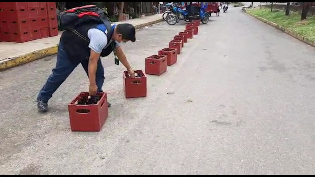 Un comerciante distribuidor de productos cítricos y bebidas alcohólicas, colocó cajas de cervezas en la cuadra 7 del transitado Jr. Tahuantinsuyo en el barrio Comercio con la finalidad que los vehículos no estacionen en el frontis de su negocio. Las cajas fueron colocadas en una extensión de 20 metros, cerrando la posibilidad que los conductores ubiquen sus unidades en dicho lugar.