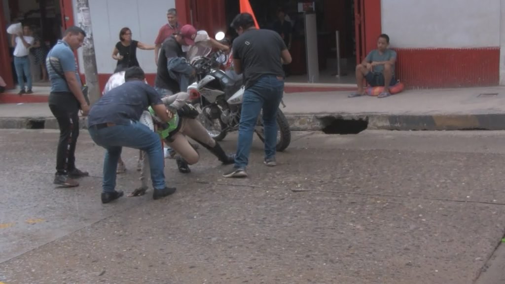 Un joven efectivo policial se despistó esta mañana en la cuadra 01 del jirón Martínez de Compagñón en el centro de Tarapoto. Se movilizaba en misión de trabajo en una de las unidades motorizadas de la Policía Nacional, aparentemente la pista húmeda produjo que la integrante del cuerpo policial cayera pesadamente, en esos momentos caía una fina llovizna en nuestra ciudad. Pobladores que pasaban por la dicha cuadra la apoyaron, le ayudaron a levantarse así como la pesada unidad. Un testigo refirió que vieron a la joven voltearse y de inmediato fueron a apoyarla. El testigo refirió que la efectivo fue trasladada hasta el hospital por un golpe en la pierna.