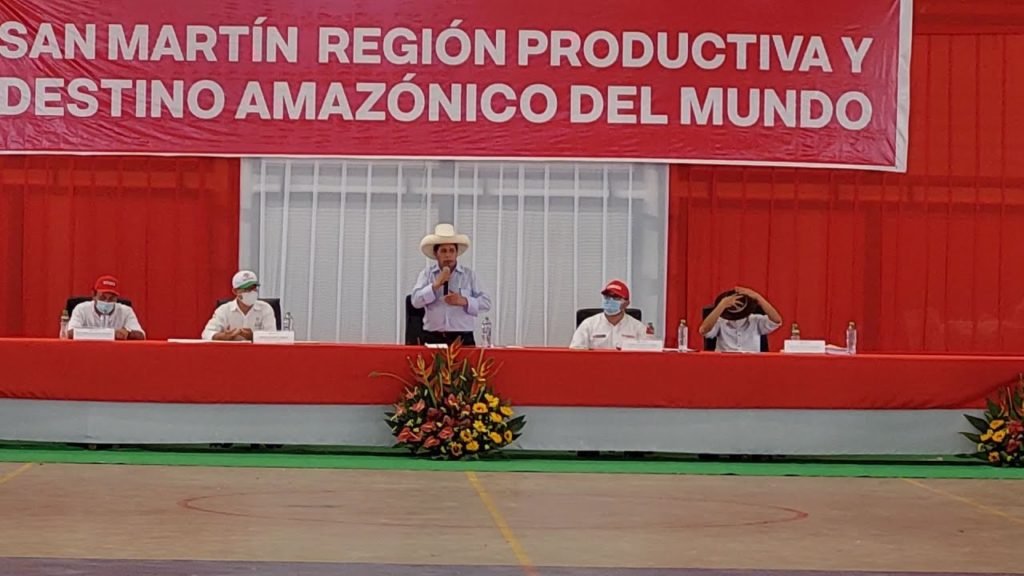 El Presidente Pedro Castillo, junto con los ministros de Vivienda, Ministerio de Transportes y Comunicaciones y Ministerio de Desarrollo Agrario se reunieron con los Alcaldes provinciales y el Gobernador regional de San Martín.