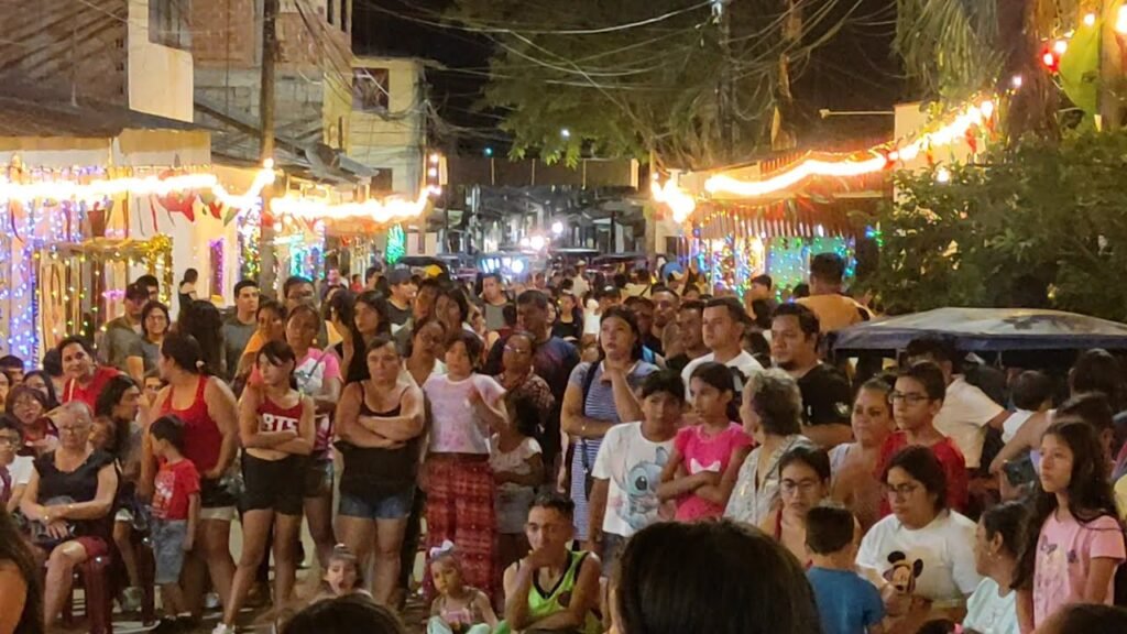 Este domingo, los vecinos de la cuadra 07 del Jr. Bolognesi en Tarapoto realizaron la ceremonia de encendido de luces navideñas, para lo cual, desarrollaron una programación con la presencia de personajes tradicionales de las fiestas de nacimiento del niño Jesús.