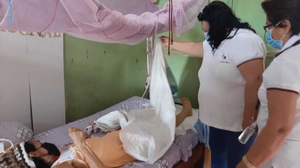 Las integrantes de la asociación civil Manos Unidas de Tarapoto, llegaron hasta el domicilio de la humilde mujer para brindar apoyo económico, productos de primera necesidad, y medicamentos para su tratamiento.