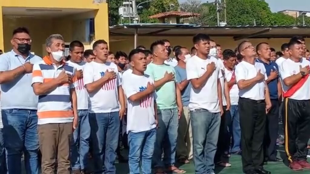 Este lunes, el centro penitenciario Santo Toribio de Mogrovejo ubicado en Tarapoto, inauguró el campeonato del fulbito canero denominado «Mundialito Qatar 2022«. Los integrantes de los pabellones del establecimiento penitenciario, estuvieron acompañados de sus padrinos y madrinas que participaron en el desfile adecuadamente uniformados con la ropa deportiva del país que representaban.