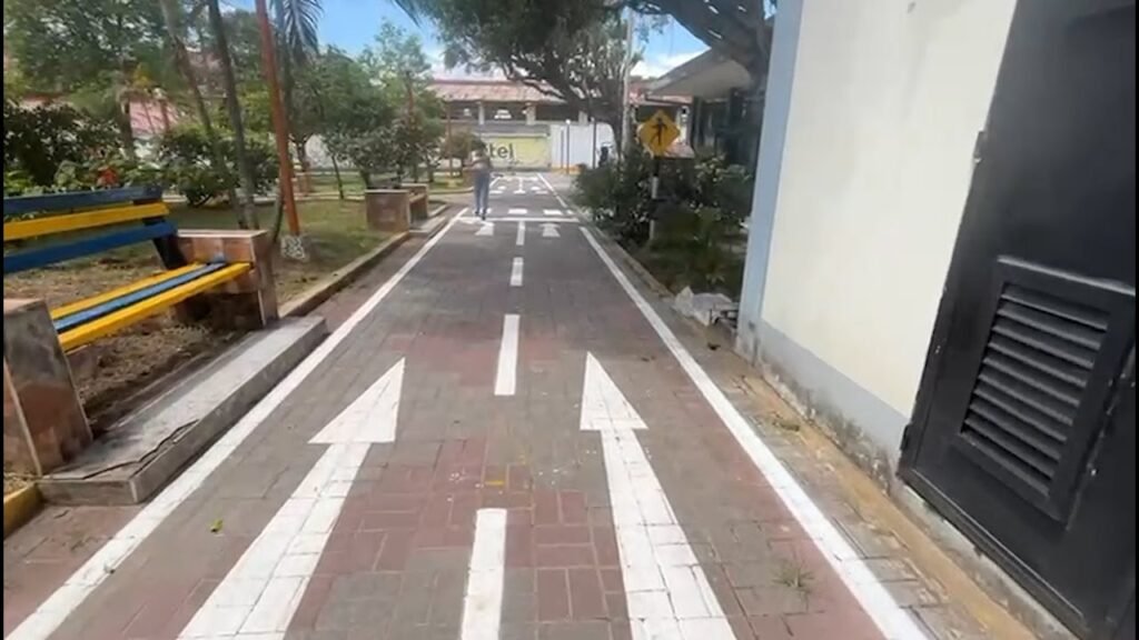 El parque, denominado “Parque Temático Vial de la Paz”, cuenta con señalizaciones, semáforos, pasos peatonales y otras herramientas didácticas que permitirán a los niños conocer y practicar de manera lúdica las normas básicas de tránsito. Todos hechos de material reciclaje.