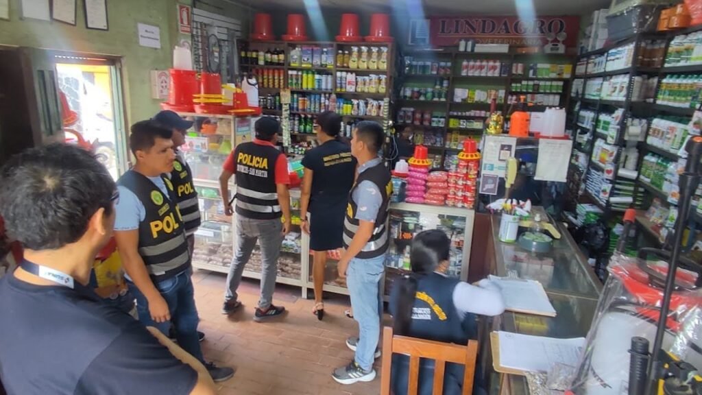 Personal de la Policía Fiscal en conjunto con la Fiscalía de Prevención del Delito, intervinieron un local de venta de productos agroveterinarios ubicados el Jr. Antonio Raimondi cuadra 3 en Tarapoto, donde encontraron 3572 productos con fechas vencidas, las mismas estaban siendo comercializadas.