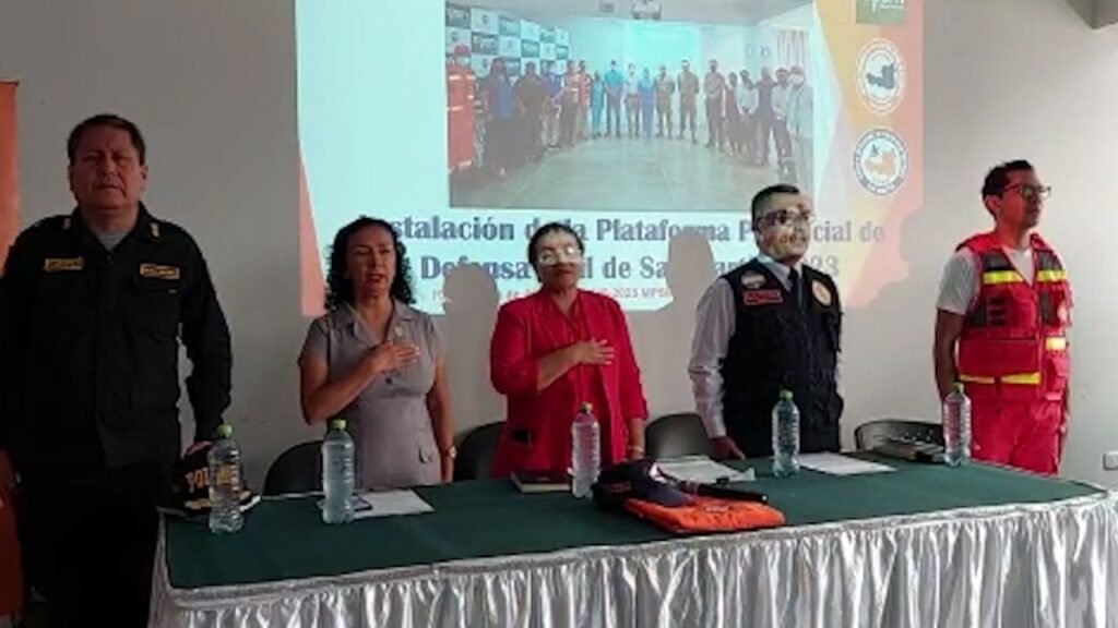 Integrantes de la nueva junta directiva de Defensa Civil presidida por la alcaldesa provincial Sra. Lluni Perea Pinedo, participaron en la primera reunión ordinaria de la plataforma para la instalación y aprobación del plan anual de trabajo conforme a la normativa vigente.