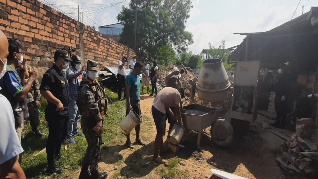 Como un día cualquiera así encontramos a un grupo de obreros laborando en la construcción de una vivienda ubicada en la intersección de los jirones Pedro de Urzúa y Ricardo Palma. Los efectivos policiales, Ejército Peruano acompañados con personal de fiscalización tuvieron que ingresar para pedir que dejen de trabajar ya que nos encontramos en estado de emergencia, de no hacerlo serían llevados a la comisaría y denunciados por desacato. Al no tener otra opción, el maestro de obra pidió a las autoridades darle un tiempo prudencial para que la mezcla que había preparado no se malogre. Finalmente las autoridades obligaron a paralizar la obra de construcción civil.