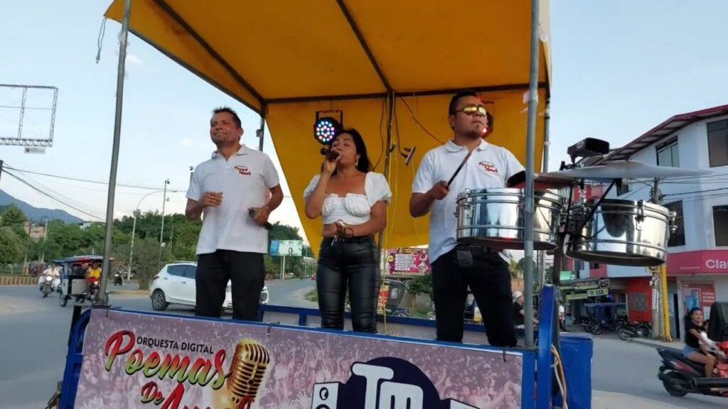 Músicos siguen en las calles después de la pandemia. En esta oportunidad, se trata de un grupo de jóvenes talentosos que formaron una orquesta digital denominada «Poemas de Amor» y se ubican en los semáforos para deleitar con sus canciones, a cambio de ello, reciben una propina, pero también se promocionan para eventos sociales.