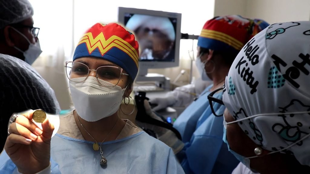 Los médicos Karol Valdivia de Gastroenterología y Jorge Ríos de la especialidad de Anestesiología, junto a un equipo de licenciados de enfermería y técnicos en enfermería, lograron realizar el procedimiento médico de manera exitosa a través de una endoscopia digestiva alta.
