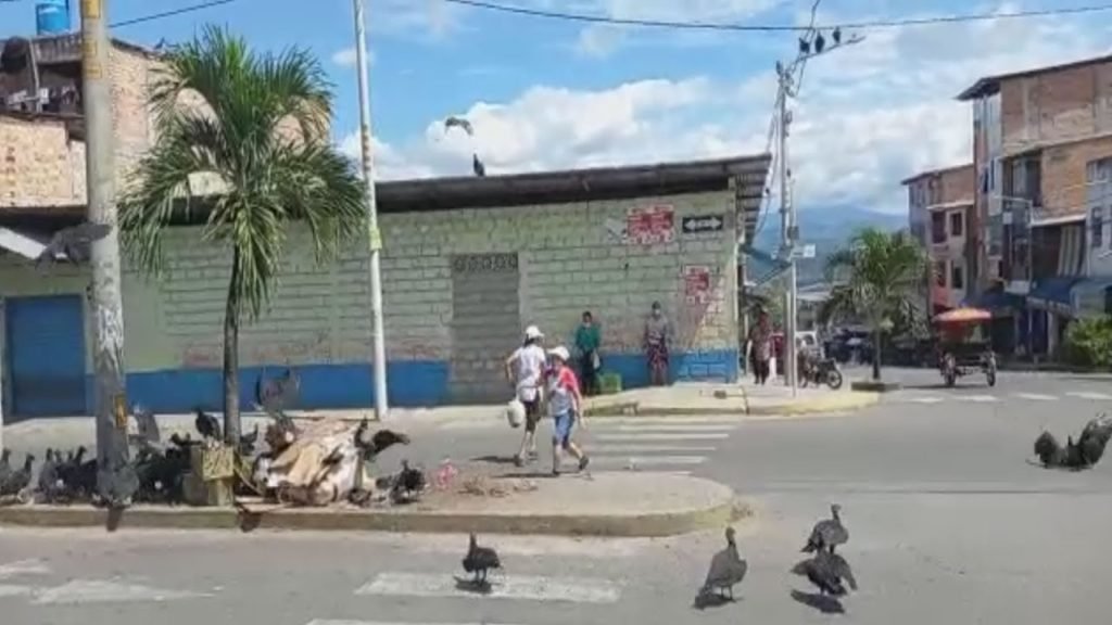 Comerciantes, aparentemente dedicados a la venta de pescado, ubicados en la intersección del Jr. Santa Rosa y la Av. Lima, fueron registrados por transeúntes arrojando basura en la vía pública.
