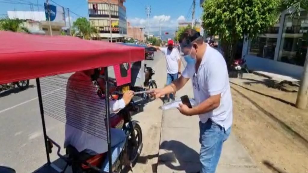 Incentivando el uso del protector facial para hacerle frente al aumento de personas infectadas con la COVID-19, la Subgerencia de Tránsito y Educación Vial de la Municipalidad Provincial de San Martín a cargo del Cmdte. PNP(r). Eliseo Vásquez Rojas, en coordinación con la Federación Regional de Mototaxistas, iniciaron la entrega de protectores faciales a los peatones y conductores de motos y trimóviles, la actividad se desarrolló en el Jr. Alfonso Ugarte cuadra 09.