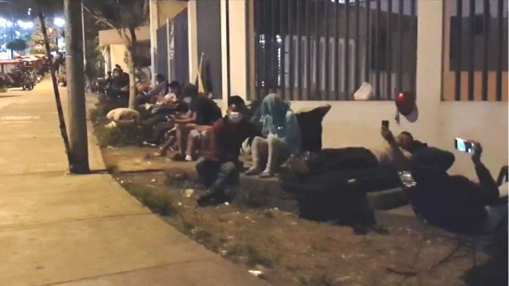 En este lugar pernoctaron para ser los primeros en recibir la inmunización, un buen grupo con la primera dosis y otros con la segunda del laboratorio Sinopharm.