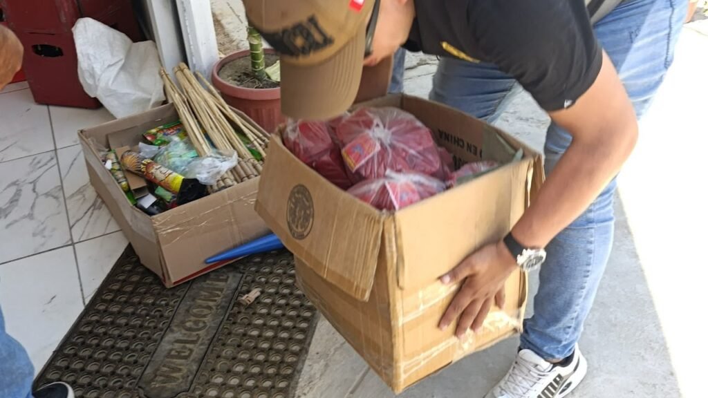 Efectivos policiales de la División de Investigación Criminal de Tarapoto, incautaron una gran cantidad de productos pirotécnicos en el interior de un restaurante ubicado en la jurisdicción del distrito de La Banda de Shilcayo.