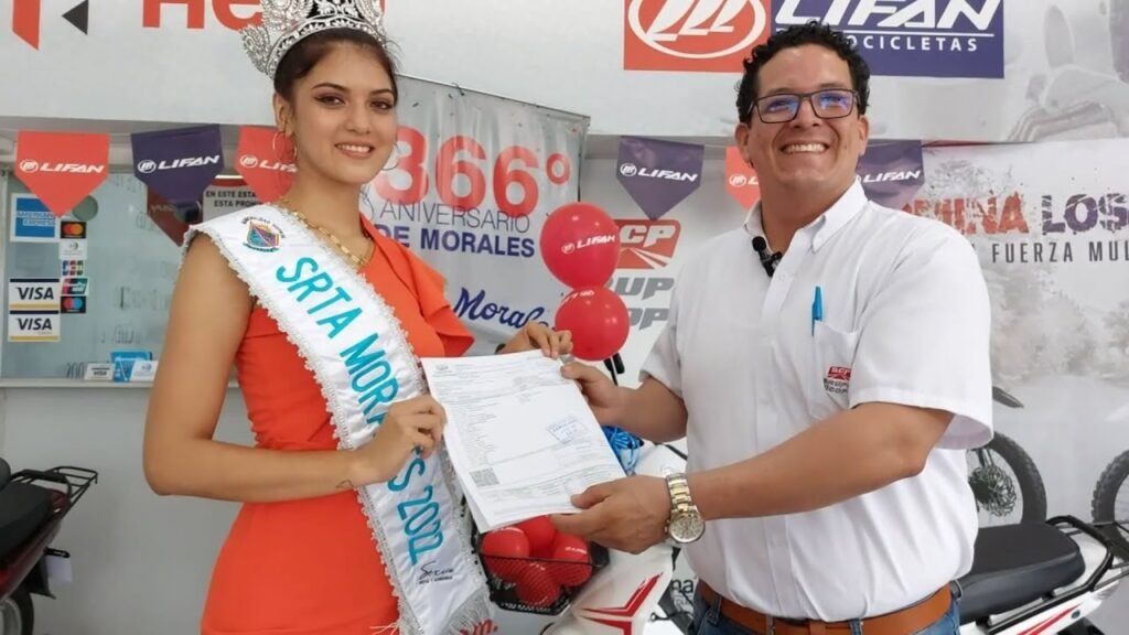 Socopur y la Municipalidad de Morales, entregaron una motocicleta a la ganadora del certamen señorita aniversario 2022 Shery Jazmín Ramírez Córdova.