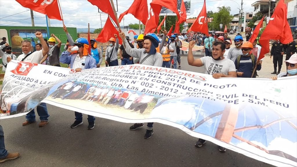 Integrantes de la Confederación General de Trabajadores del Perú – CGTP y el Sindicato de Trabajadores de Construcción Civil de las 10 provincias de San Martín, acataron un paro nacional contra el asesinato de trabajadores por el tema de cupos, así como en contra de actos de corrupción que se dan en nuestro país.