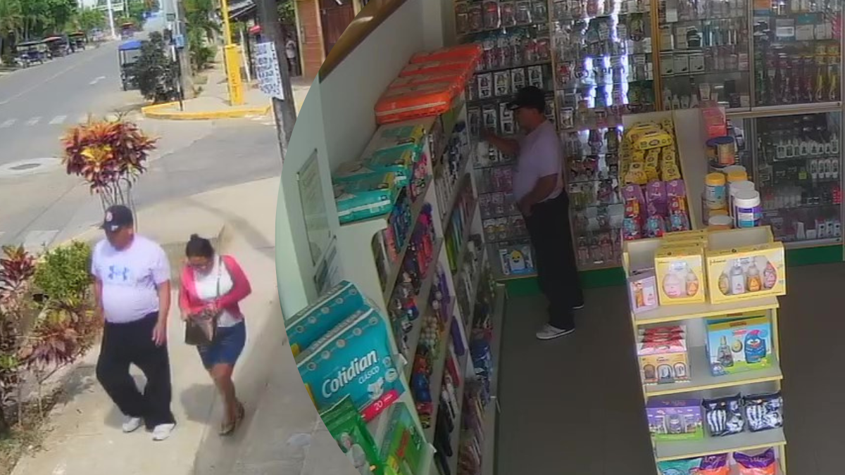 Los ladrones ingresaron a la botica Altomayo ubicada en la cuadra 12 de la Av. Circunvalación en Tarapoto, como si fueran clientes. Mientras la mujer distraía a la vendedora, el sujeto se apoderaba de los frascos de champo y los colocaba en sus partes íntimas para no levantar sospechas. Luego de haber cometido su fechoría, ambos se retiran del negocio como si nada hubiera pasado.